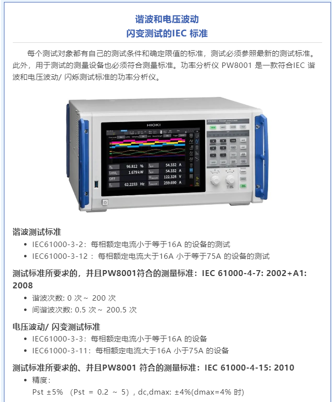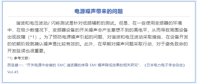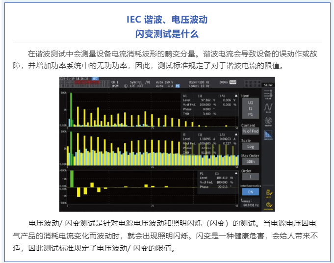 諧波和電壓波動/ 閃變測試是電氣產(chǎn)品所要求的IEC 標準中被稱為電能質(zhì)量低頻輻射的EMC 測試的一部分。近年來,不僅是功率調(diào)節(jié)器,普通家用變頻產(chǎn)品的高頻噪聲也被認為是電能質(zhì)量的問題。