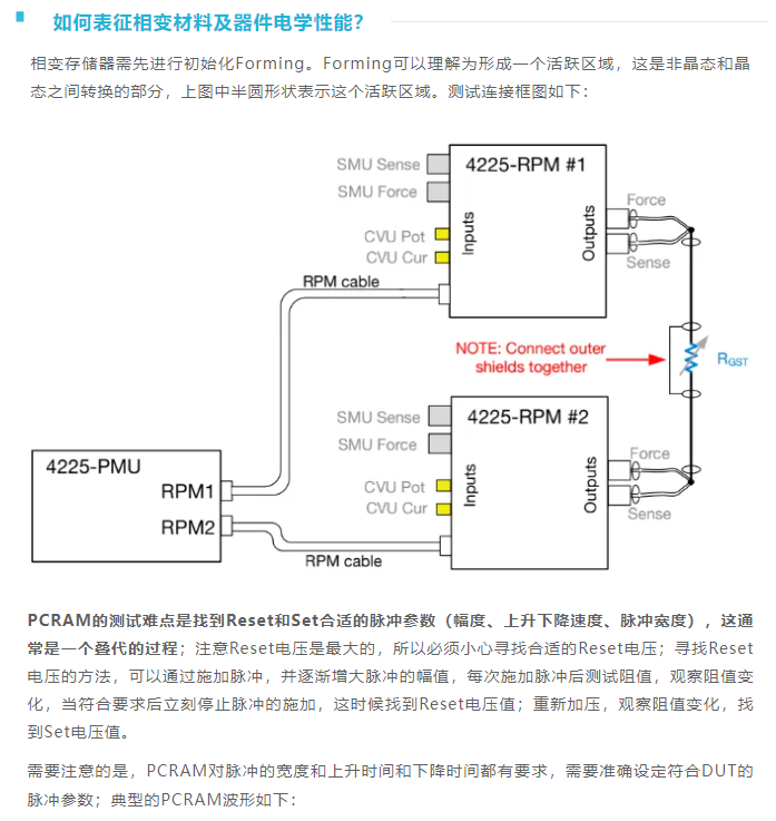 在非晶態(tài)下,GST材料具有短距離的原子能級和較低的自由電子密度,使得其具有較高的電阻率。由于這種狀態(tài)通常出現(xiàn)在RESET操作之后,一般稱其為RESET狀態(tài),在RESET操作中DUT的溫度上升到略高于熔點溫度,然后突然對GST淬火將其冷卻。非晶層的電阻通??沙^1兆歐。在晶態(tài)下,GST材料具有長距離的原子能級和較高的自由電子密度,從而具有較低的電阻率。由于這種狀態(tài)通常出現(xiàn)在SET操作之后,我們一般稱其為SET狀態(tài),在SET操作中,材料的溫度上升高于再結晶溫度但是低于熔點溫度,然后緩慢冷卻使得晶粒形成整層。晶態(tài)的電阻范圍通常從1千歐到10千歐。