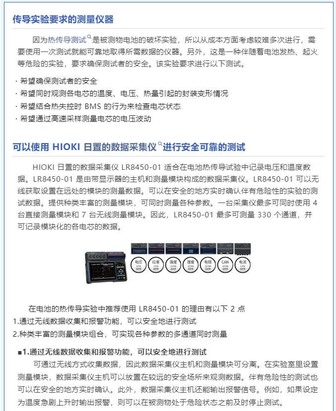 本篇應用案例介紹了使用 HIOKI 日置數(shù)據(jù)采集儀進行熱傳導性能測試的方案,以了解電池熱失控時的熱傳導過程。